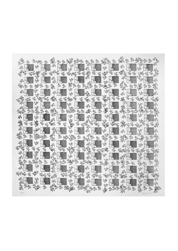 La selección de obras reunió un conjunto representativo de su producción gráfica, trazando un recorrido que abarcó desde las ediciones realizadas por el propio Ferrari durante su exilio en Brasil, en las décadas de 1970 y 1980, hasta trabajos desarrollados en colaboración con distintas casas editoras nacionales e internacionales. Heliografías, serigrafías, litografías, grabados y xerocopias dieron cuenta de un lenguaje visual persistente, donde la repetición, la escritura, el montaje y la ironía funcionan como herramientas críticas frente al poder, la violencia institucional y los discursos hegemónicos.